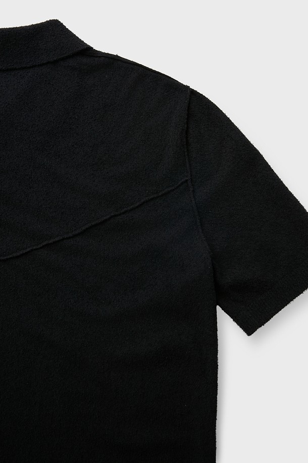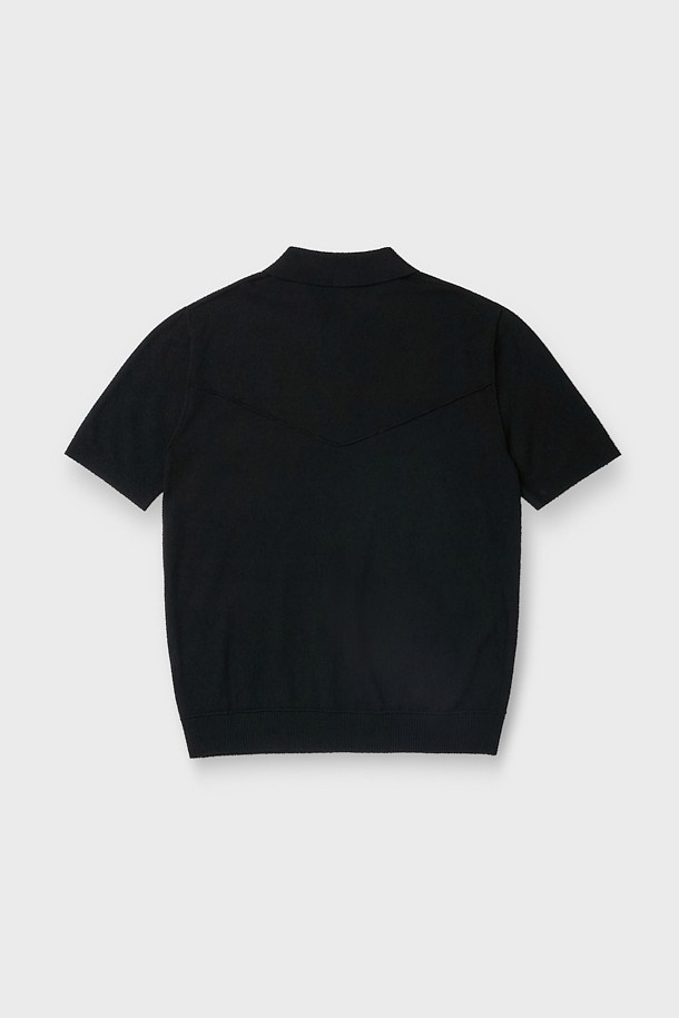 BARANCO 버튼 카라 숏 슬리브 니트