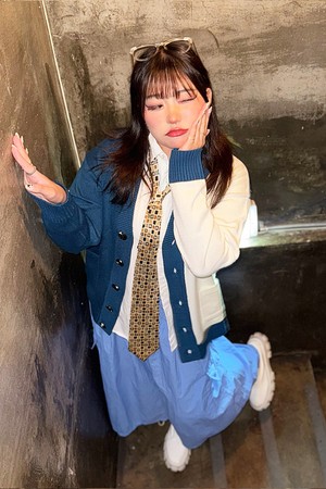 인타샤 하프 하프 니트 가디건_블루