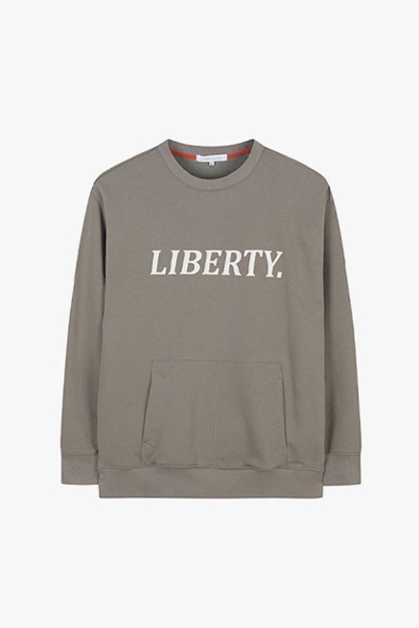 LJM41116 오버핏 올리브 미니멀 프린트 맨투맨