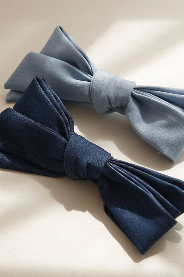 제이로렌 패브릭 데님 빅 리본 헤어 자동핀 H0975