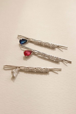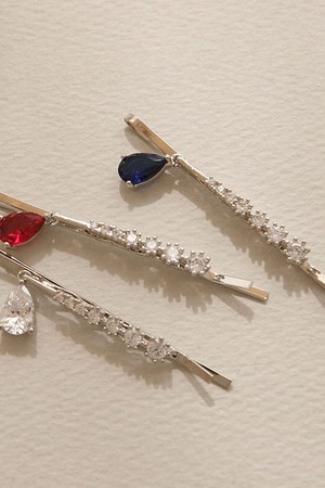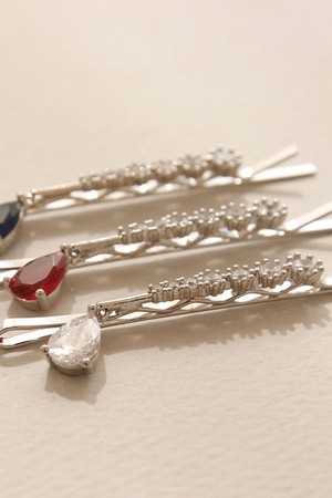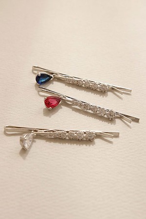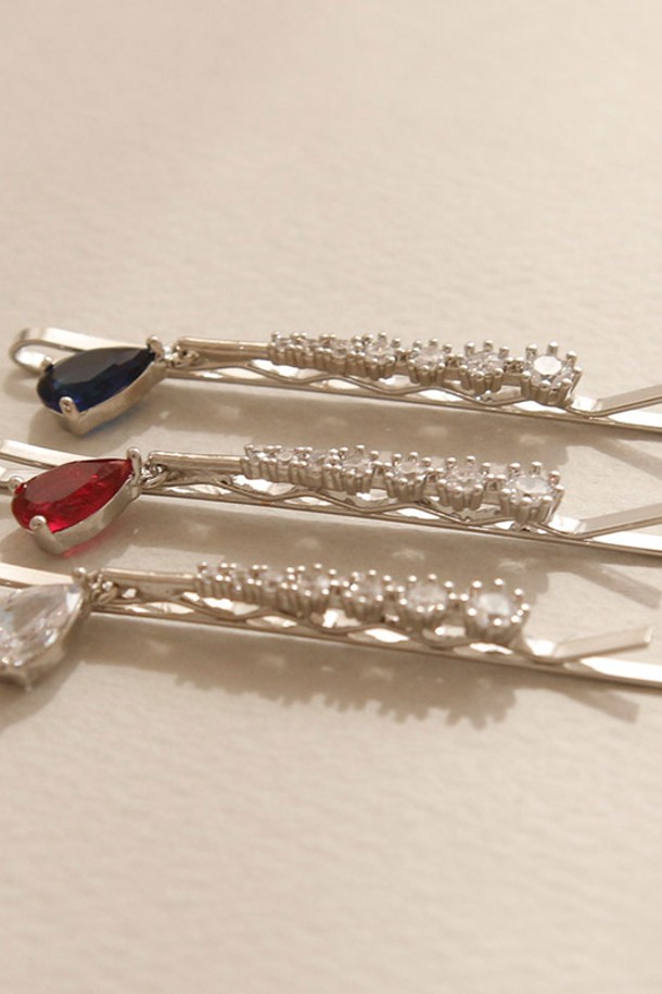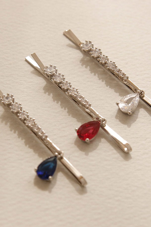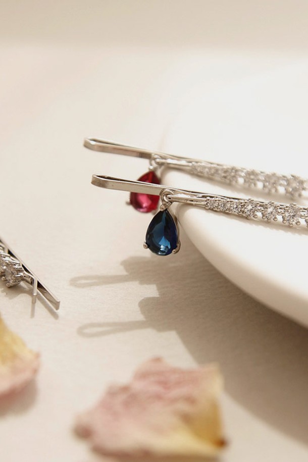 제이로렌 드롭 물방울 컬러 큐빅 일자 실핀 H0989