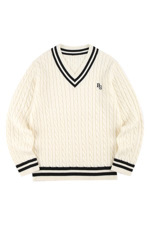 남성 브이넥 케이블 니트 BNDSW421M