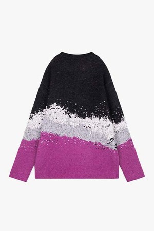 LJF51231 블랙 세미 오버핏 아트웍 부클 스웨터
