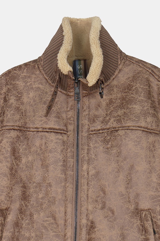 남성 크랙 에코레더 하프 무스탕 점퍼 AJP109