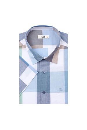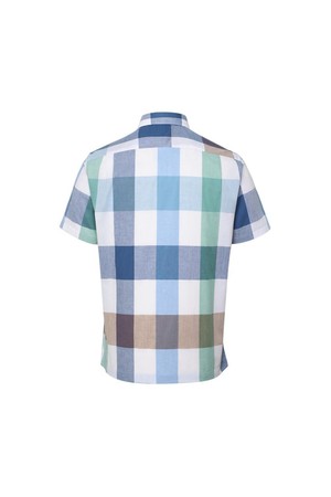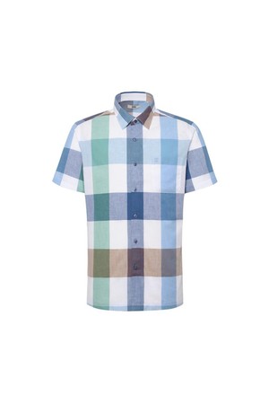 린넨혼방 미디움체크 캐주얼 반팔셔츠