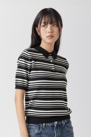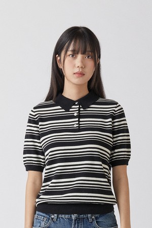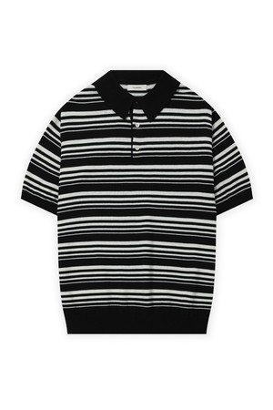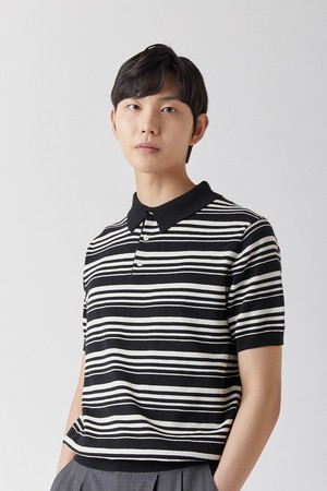 퓨어코튼100 스트라이프 카라니트 블랙_그린라벨