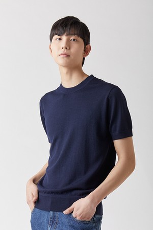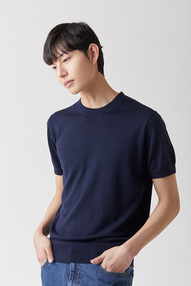 ITALY Zegna YARN 라운드니트 네이비_제냐 썸머울100