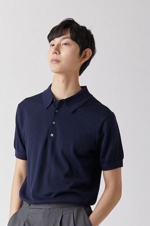 [제냐 이태리 수입원사] Zegna YARN 카라니트 네이비_제냐 썸머울100
