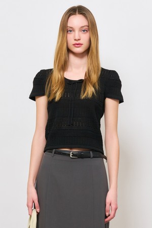 [24SS] WOMAN 캡 슬리브 펀칭 니트 풀오버 [BLACK] / WBD2L05532