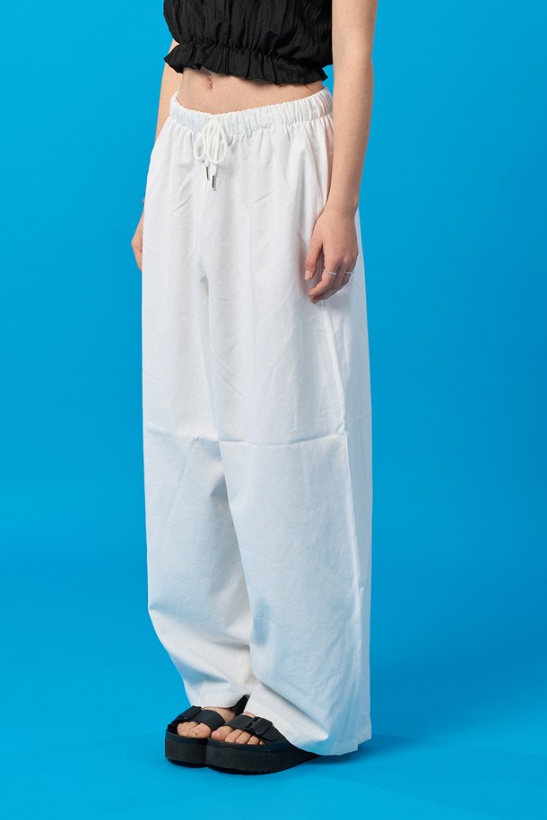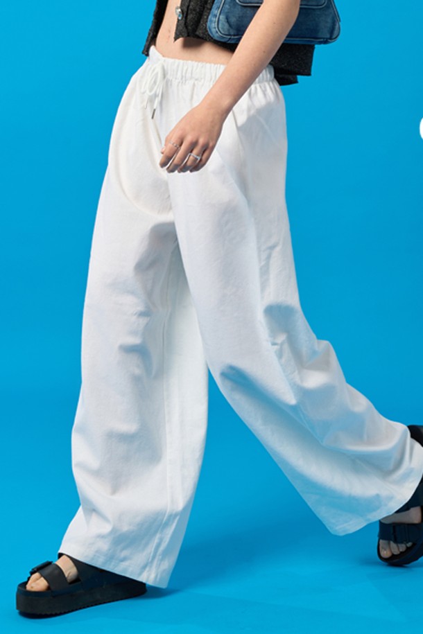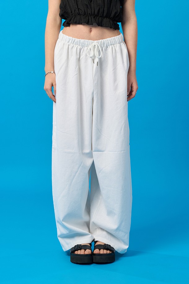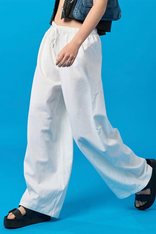 여름 린넨 와이드 슬랙스 밴딩 팬츠 [화이트]