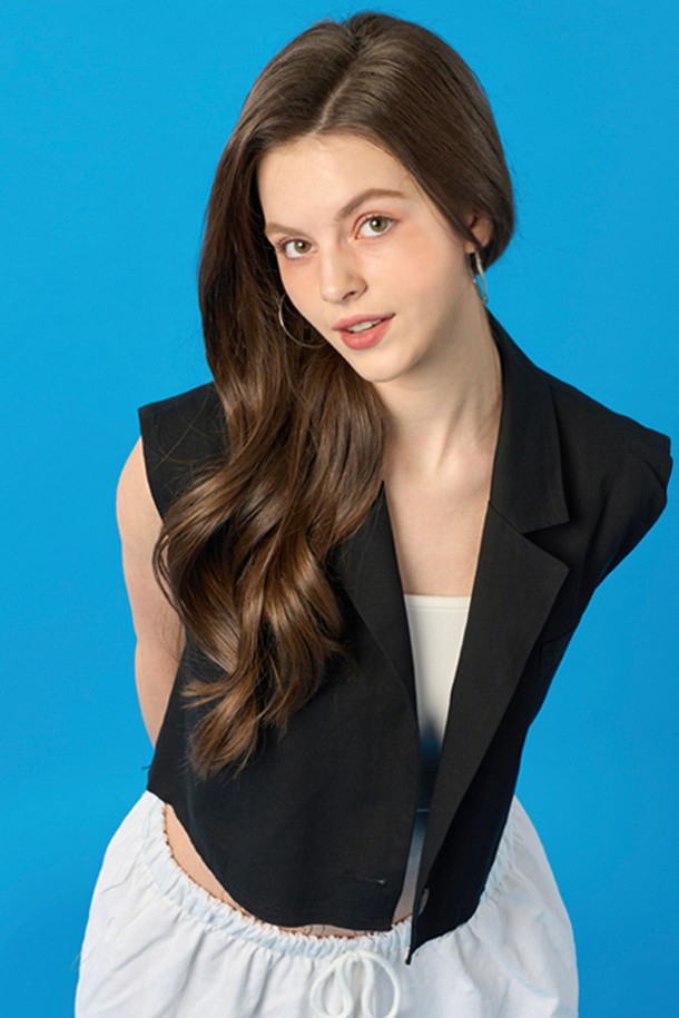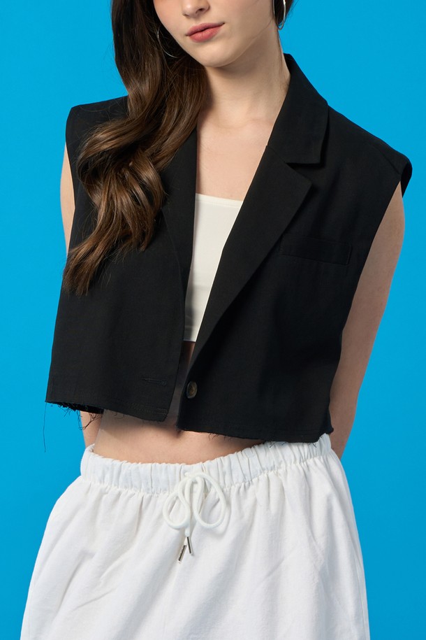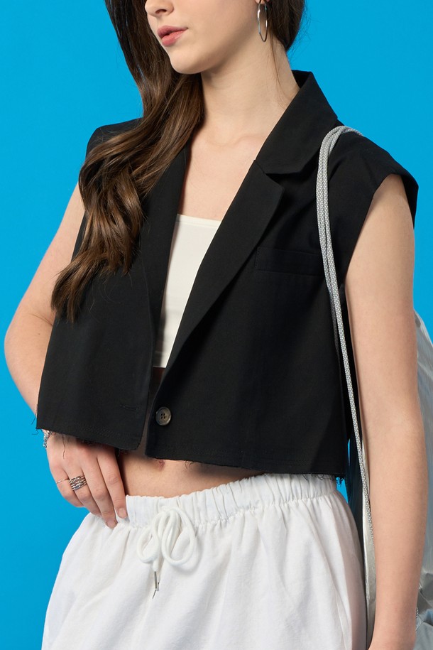 여름 나시 민소매 레이어드 무지 블레이저 [BLACK]