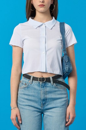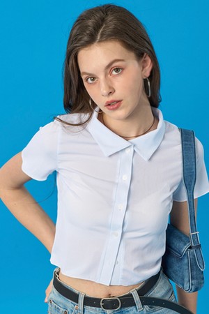 아이스 쿨링 냉장고 크롭 무지 피케 카라 반팔티 [WHITE]
