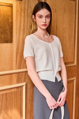 [24SS] WOMAN 스카시 슬릿 하프 니트 [WHITE] / WBD2L05540
