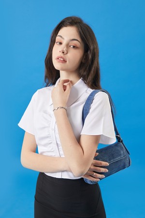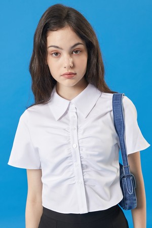 WOMEN 셔링 크롭 반팔 셔츠 [WHITE] 크롭티 반팔티 ver.
