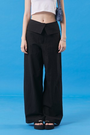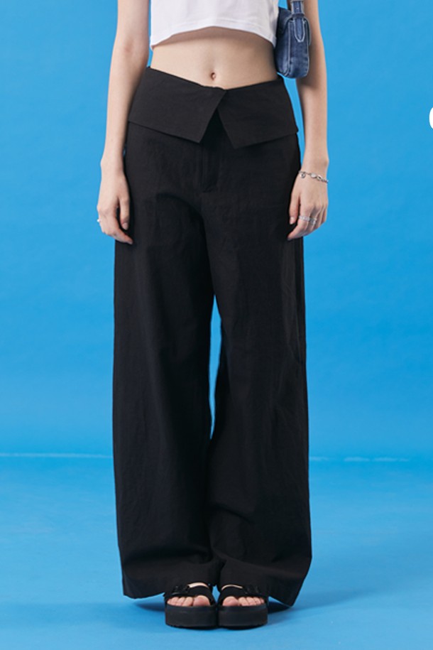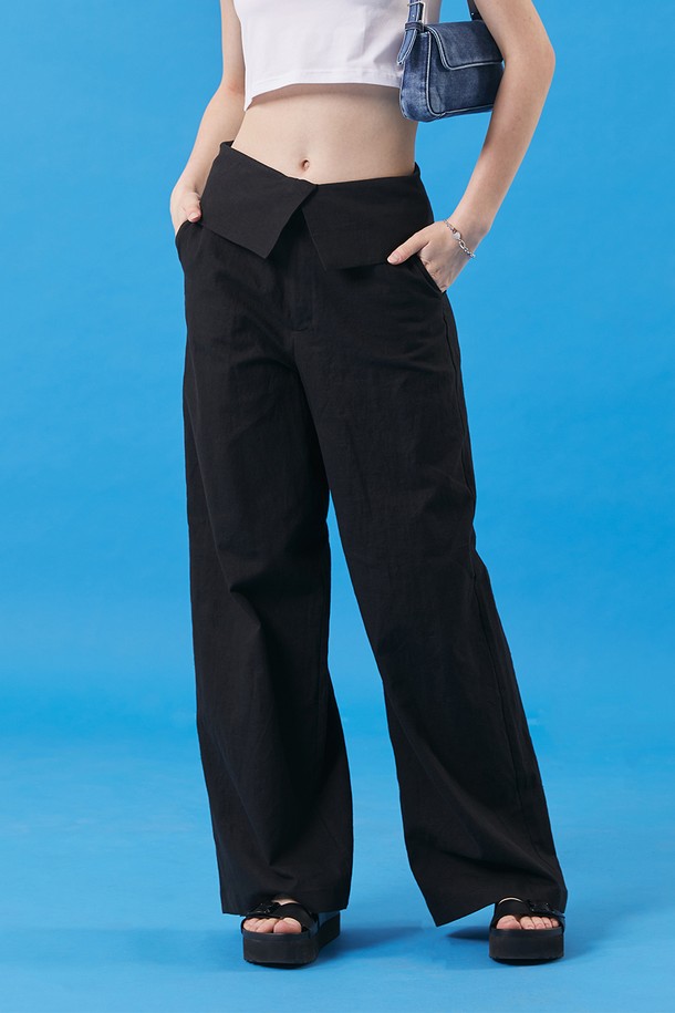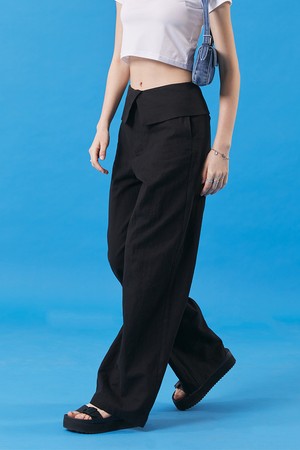 여름 린넨 하이웨스트 와이드 슬랙스 팬츠 [블랙]