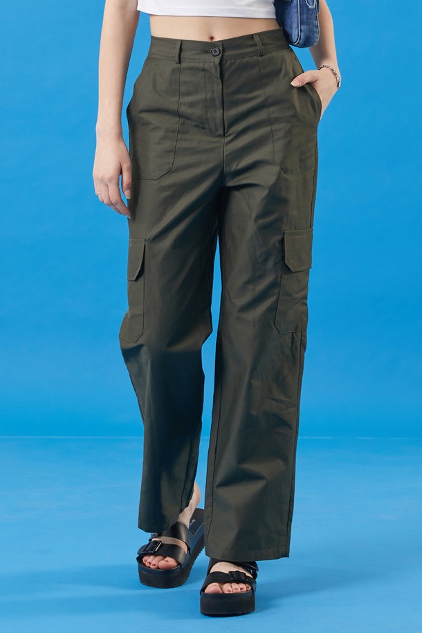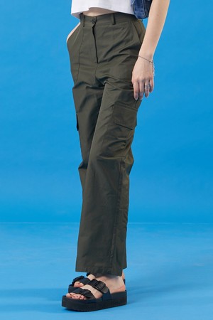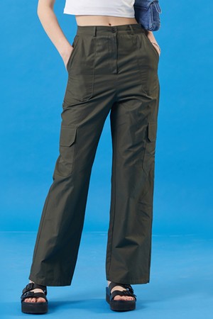 쿨링 하이웨스트 와이드 카고 슬랙스 팬츠 [KHAKI]