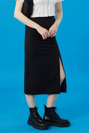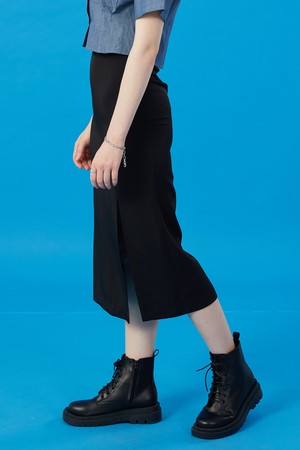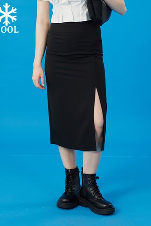 WOMEN 쿨링 냉장고 슬림 세미 트임 롱스커트 [BLACK] 롱치마 ver.
