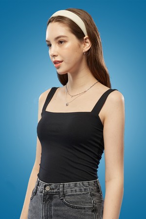 WOMEN 이너 레이어드 슬림 무지 끈나시 [BLACK] 나시 티셔츠
