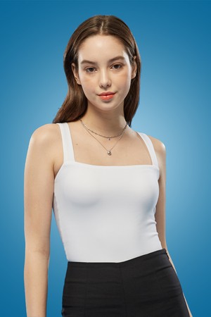 WOMEN 이너 레이어드 슬림 무지 끈나시 [WHITE] 나시 티셔츠