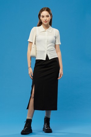 WOMEN 미디 크롭 슬림 플리츠 반팔티 가디건 [WHITE]