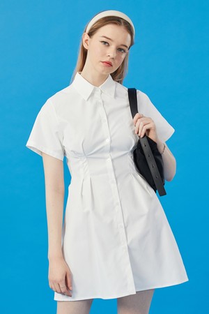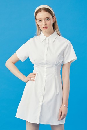 WOMEN 크롭 슬림 무지 반팔 셔츠 미니 원피스 [WHITE] 스커트 치마 ver.