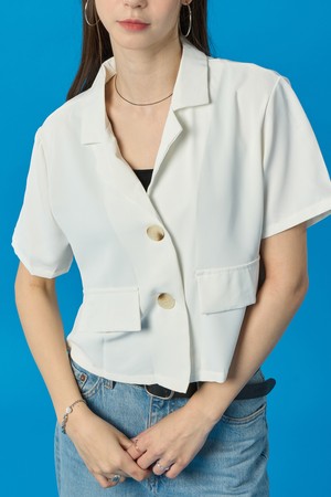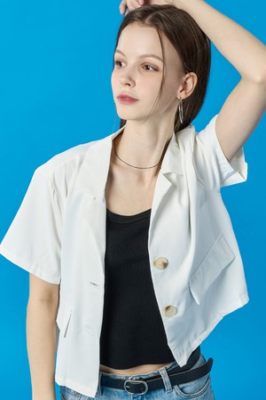 아이스 쿨링 크롭 포켓 카라 반팔자켓 [WHITE] KGL.