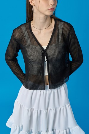 시스루 쿨링 여름 리본 끈 스트랩 가디건 [블랙] KGL.