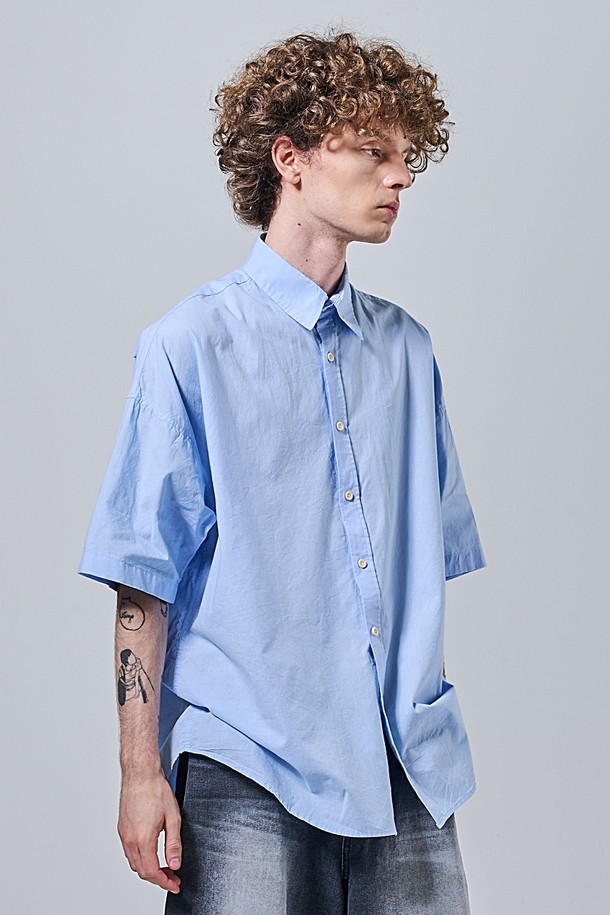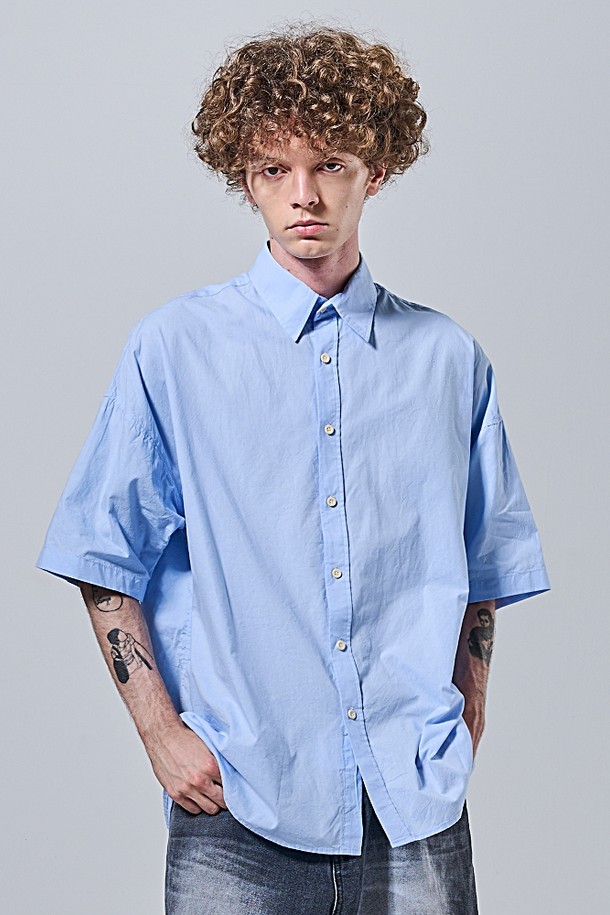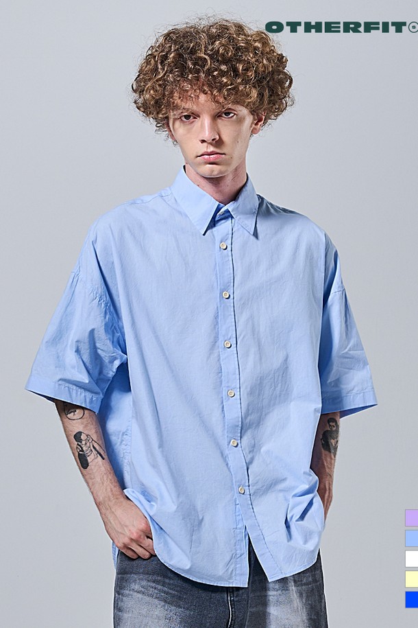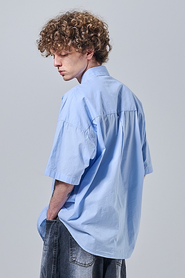 오버핏 옥스포드 카라 반팔셔츠 (블루)