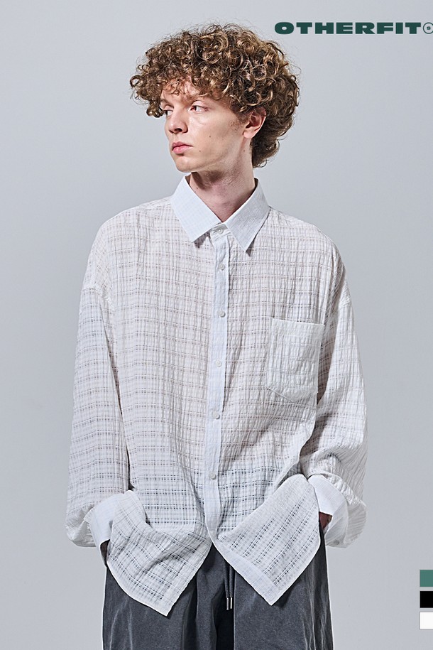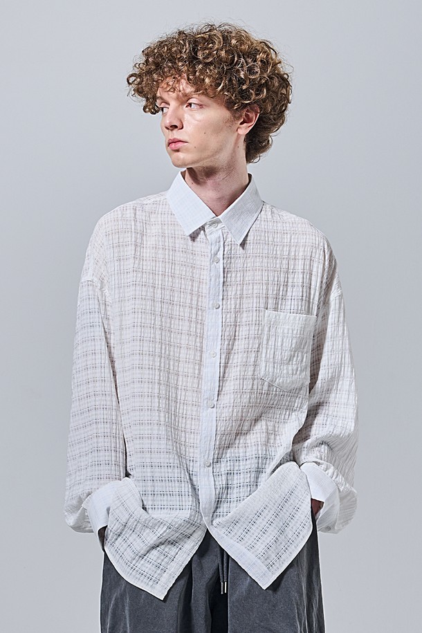 레이스 체크 오버핏 셔츠 (아이보리)