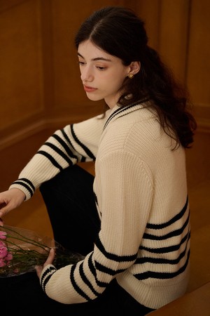 SR_College classic striped cardigan