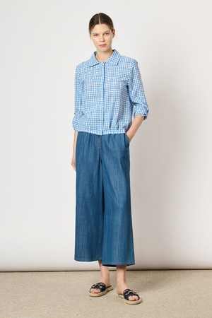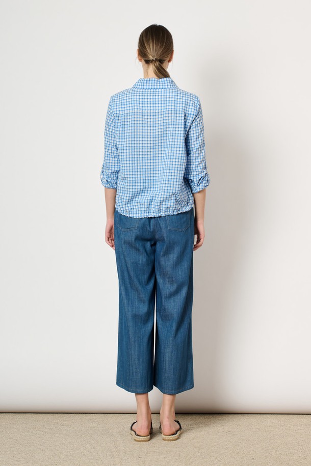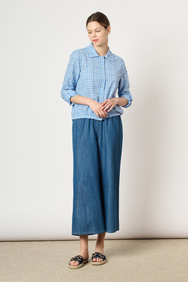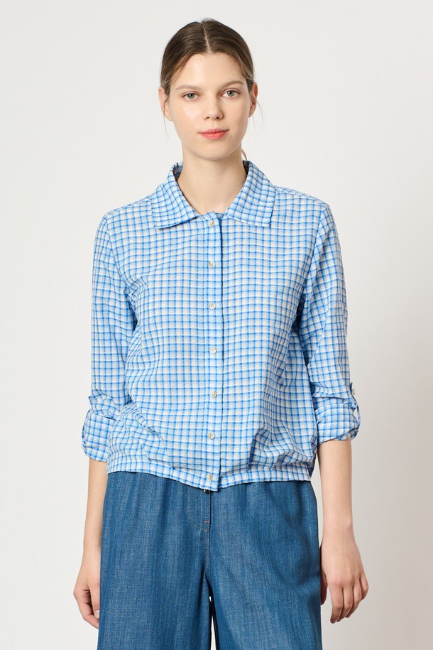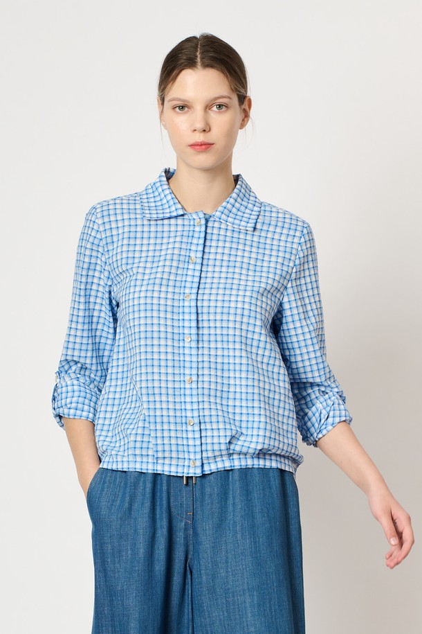 [24FA] 체크 밴딩 블라우스 - Light Blue B4F7B47051