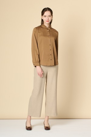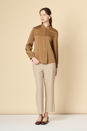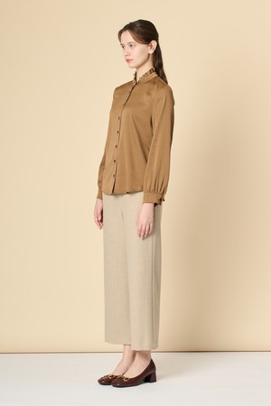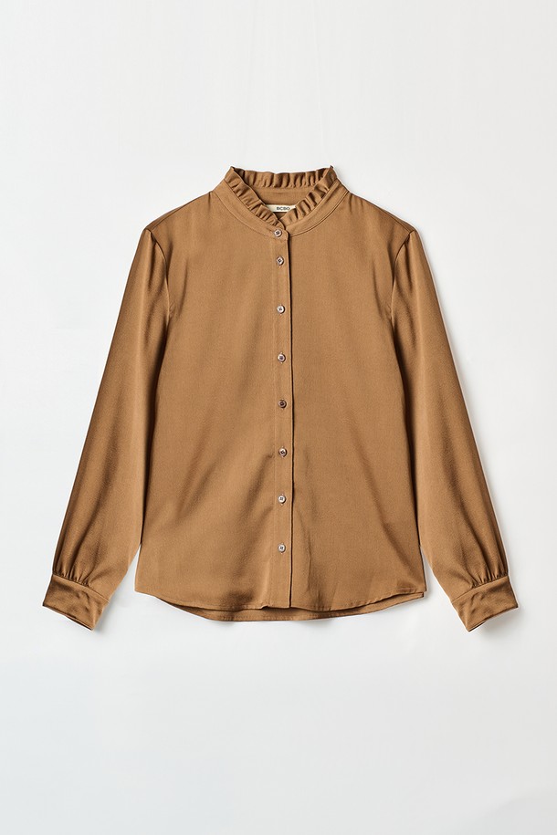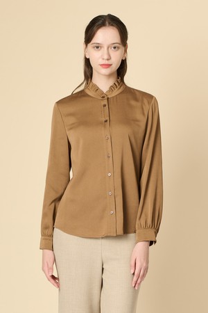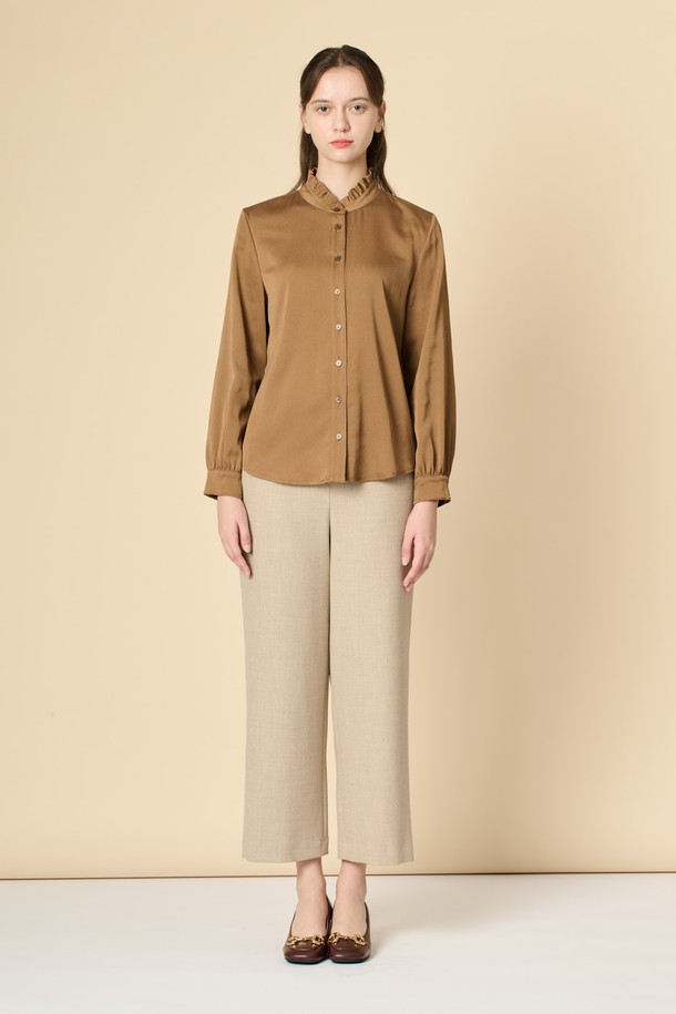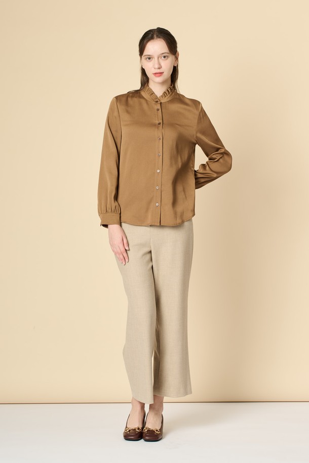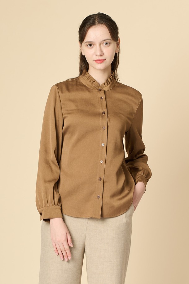 [24FA] 프릴넥 솔리드 블라우스 - DARK BEIGE B4F8B43773