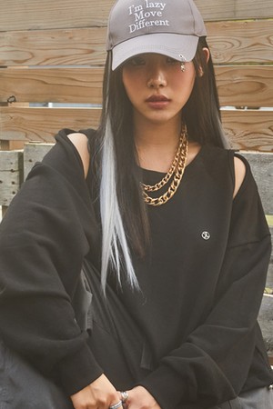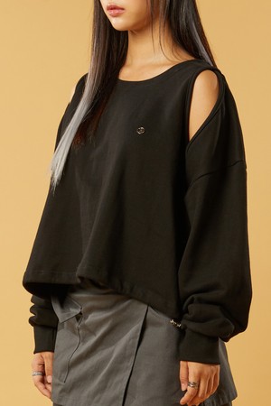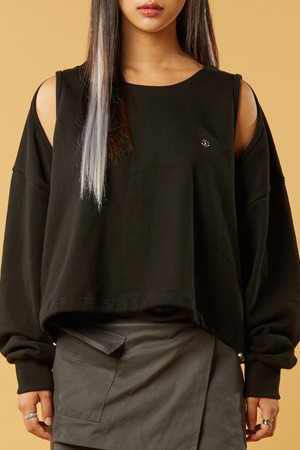 [워머 ver.] 크롭 더블 컷아웃 오프숄더 니켈 로고 맨투맨 [블랙]