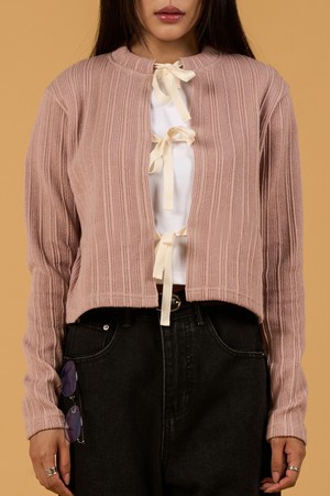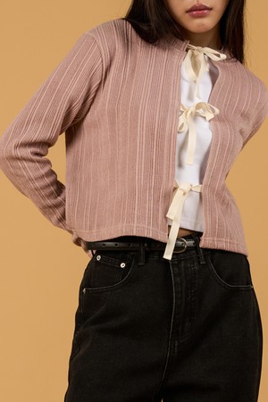 미디 크롭 리본 스트랩 니트 가디건 [핑크]