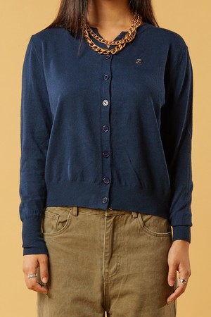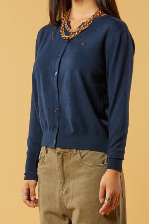 브이넥 에어리 니켈 로고 니트 가디건 [네이비] KCL.