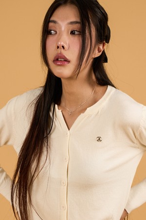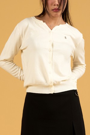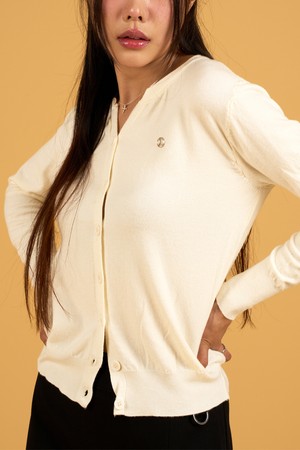 브이넥 에어리 니켈 로고 니트 가디건 [아이보리] KCL.