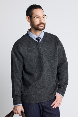 솜사탕_ 라운드 브이넥 니트 차콜 그레이 (오버핏)