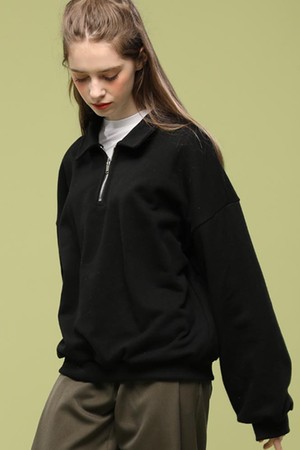 WOMEN 오버핏 아노락 긴팔티셔츠 맨투맨 [블랙]