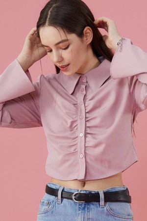 WOMEN 크롭 슬림 셔링 긴팔셔츠 [PINK] 부츠컷 소매 ver.