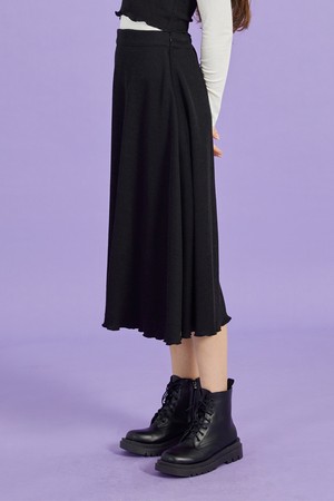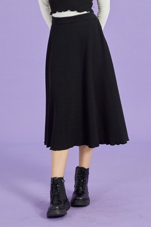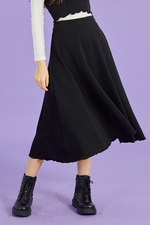 WOMEN 니트 세미 플레어 미디 롱치마 [블랙] 롱스커트 ver.