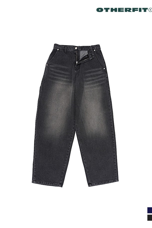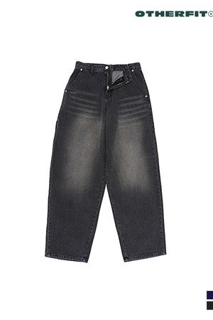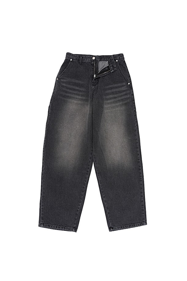 스노우 워싱 데님 와이드팬츠 (흑청)