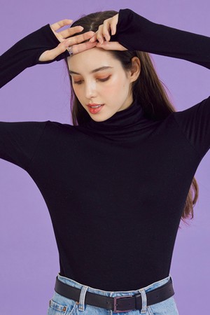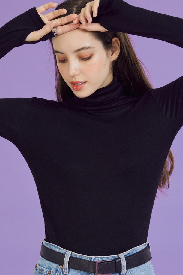 [워머 ver.] 니트 목폴라 롱슬리브 긴팔 목티 (블랙) 핸드워머 이너