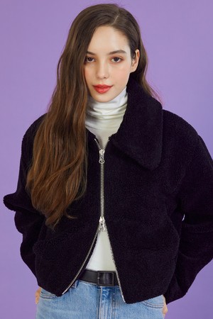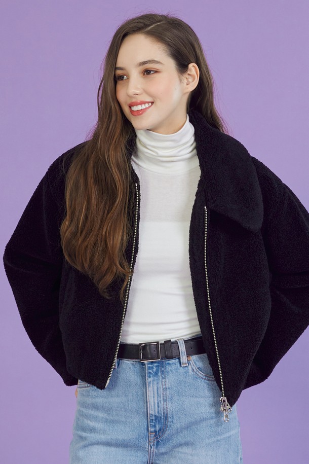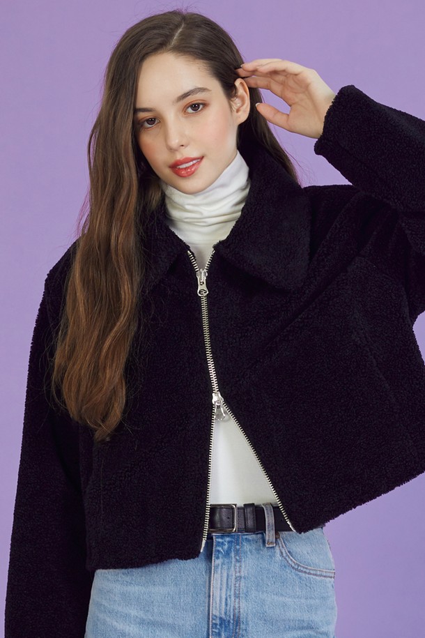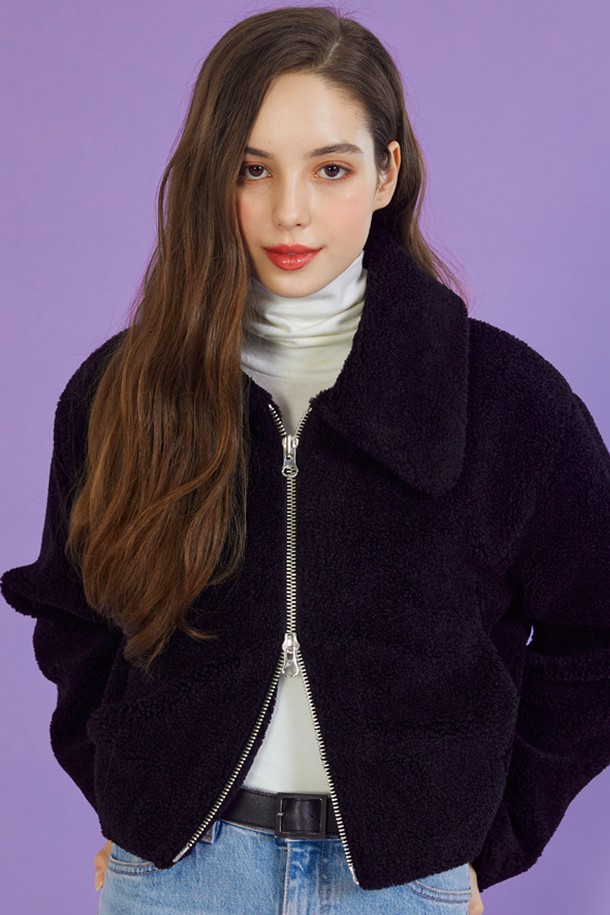 WOMEN 크롭 오버핏 덤블 투웨이 집업 퍼 무스탕 [Black] 양털 ver.