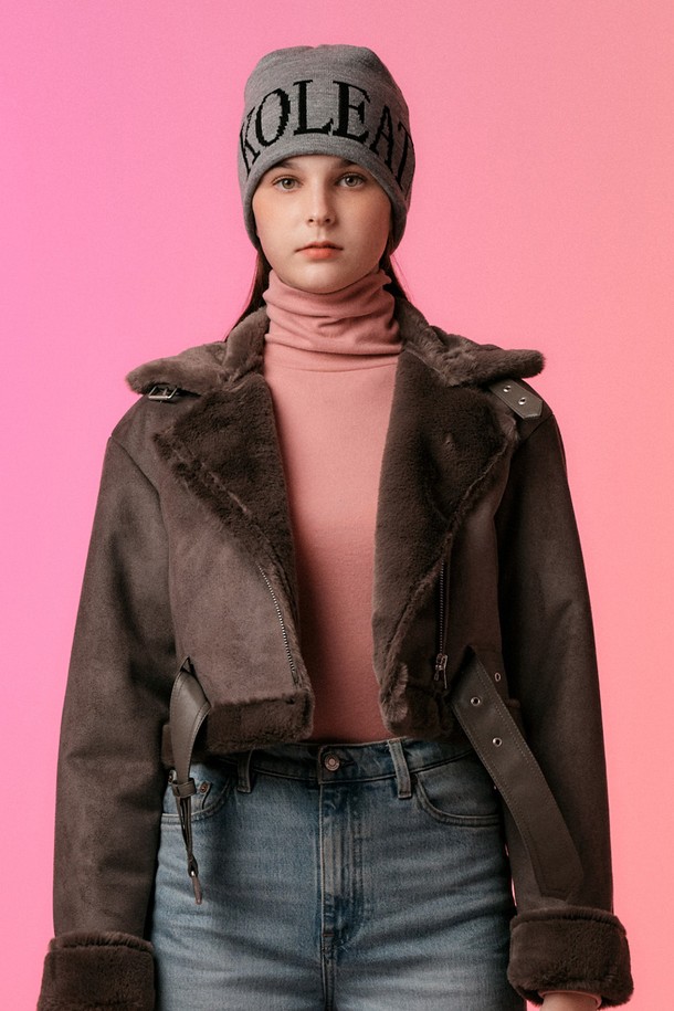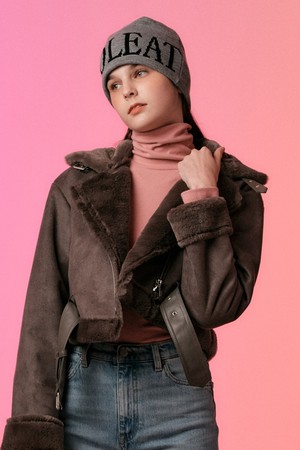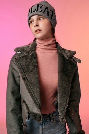 [벨트탈부착] 크롭 밍크 스웨이드 무스탕 플리스 자켓 Gray [라이더 양털 ver.]