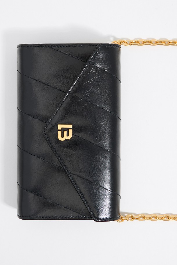 [24FW] 레더 블랙 퀼팅 미니 골드 스트랩 지갑 B246AIV004BKF