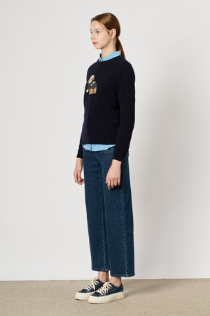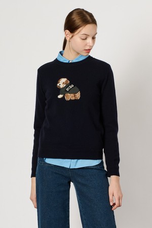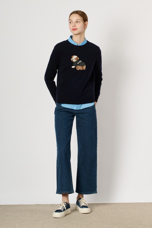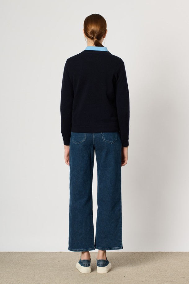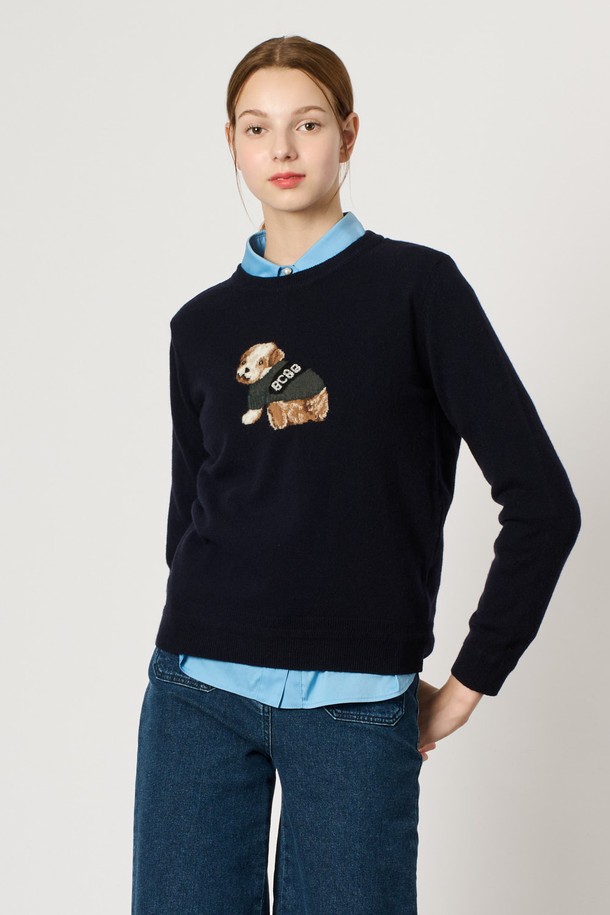 [24WT] 캐시블랜딩 원포인트 니트 탑 - NAVY B4WAK31755