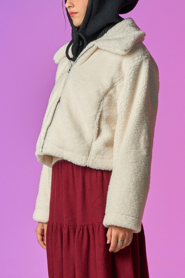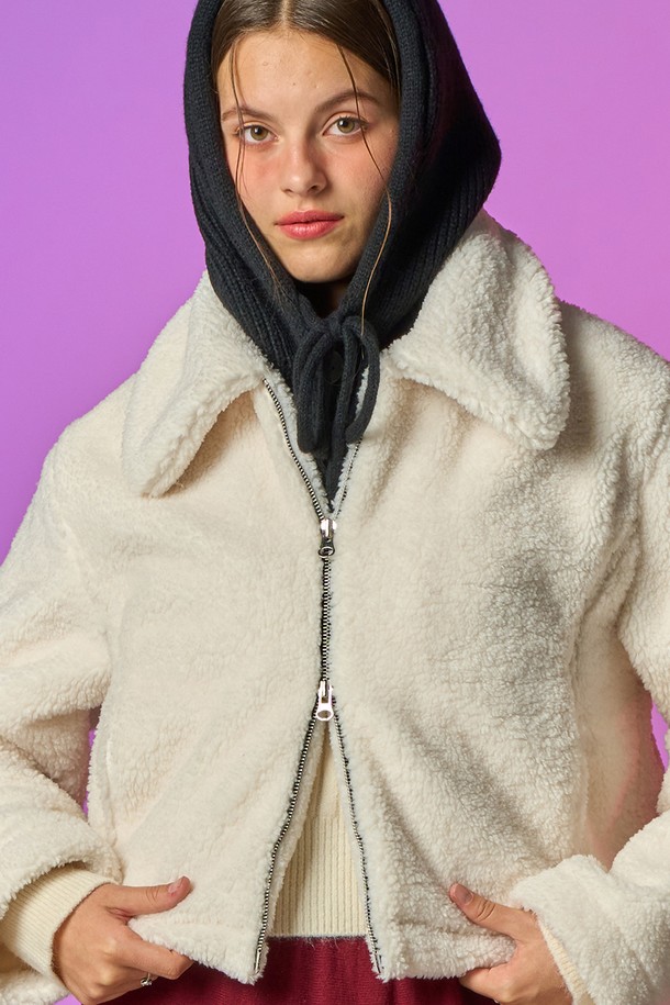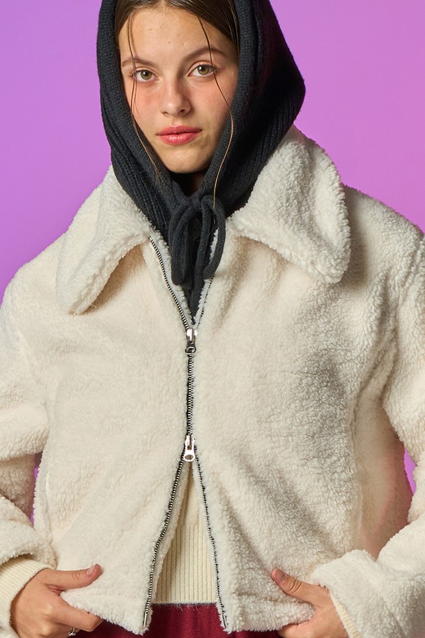 [양털 ver.] 카라 투웨이 집업 무스탕 자켓 [IVORY] 안감 후리스