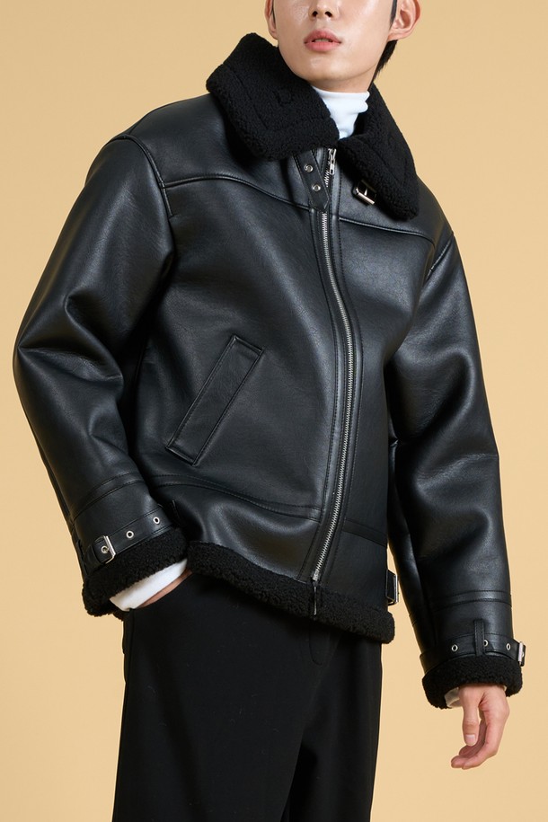 (남녀공용) B3 소매벨트 오버핏 무스탕 자켓 [All_Black]