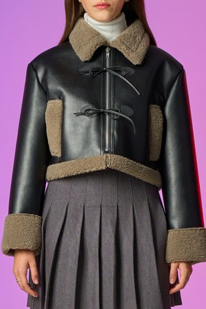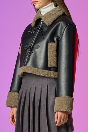 리본 크롭 레더 벨라 무스탕 자켓 [Black_Khaki gray]