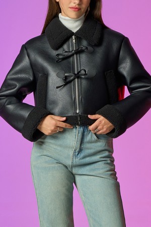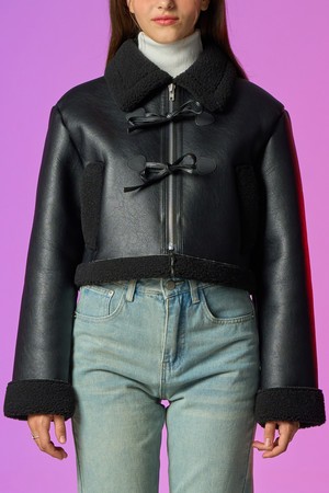 리본 크롭 레더 벨라 무스탕 자켓 [All_Black]